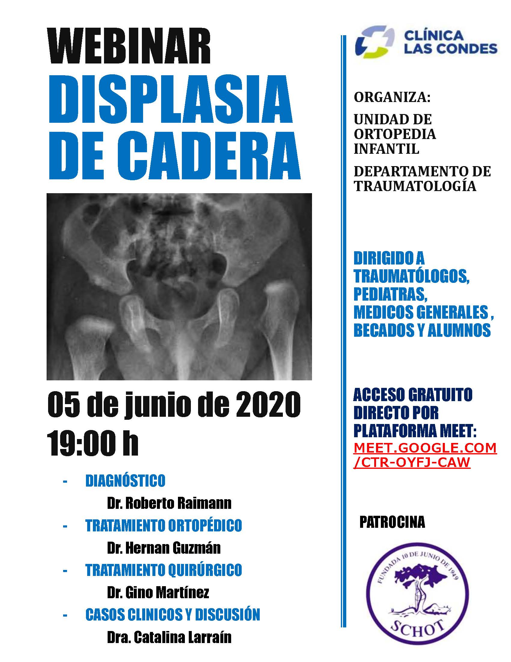 Webinar de Displasia de Cadera organizado por el Departamento de Traumatología de la Clínica las Condes, el próximo viernes 05 de junio a las 19:00 hrs.